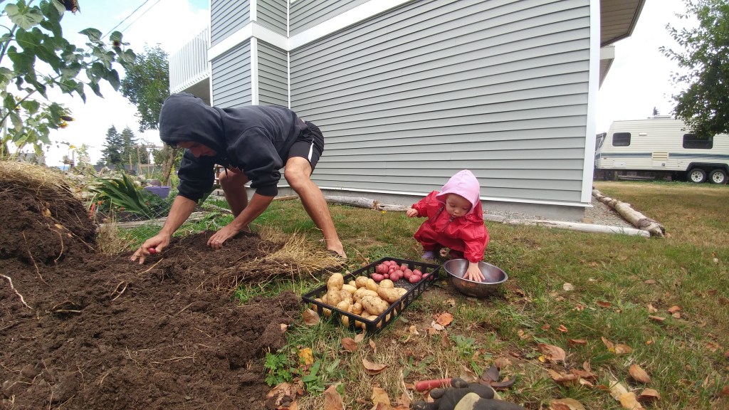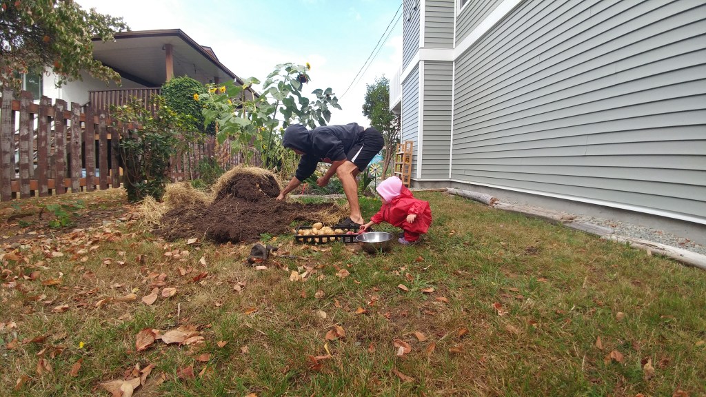 The only downside to the potato tower was that it wasn’t easy to harvest mid season and we waited until the end of the summer to harvest. We do have deer in our neighborhood and we were lucky to only have them come for a visit once. We did end up fencing the entire side garden the following year to prevent any more 4 legged friends from visiting for a snack. We decided to wait until the first week of September to knock the tower over.