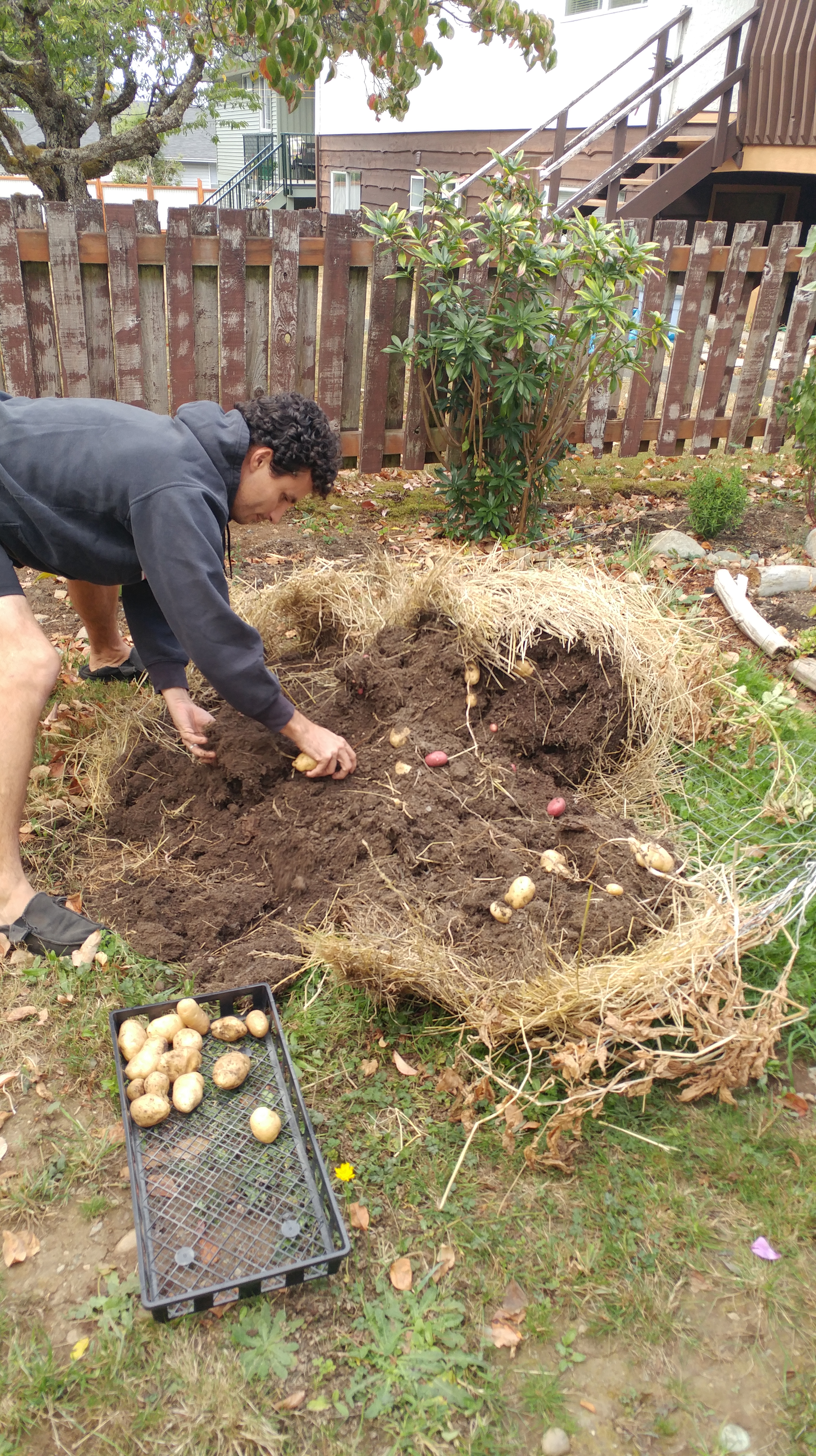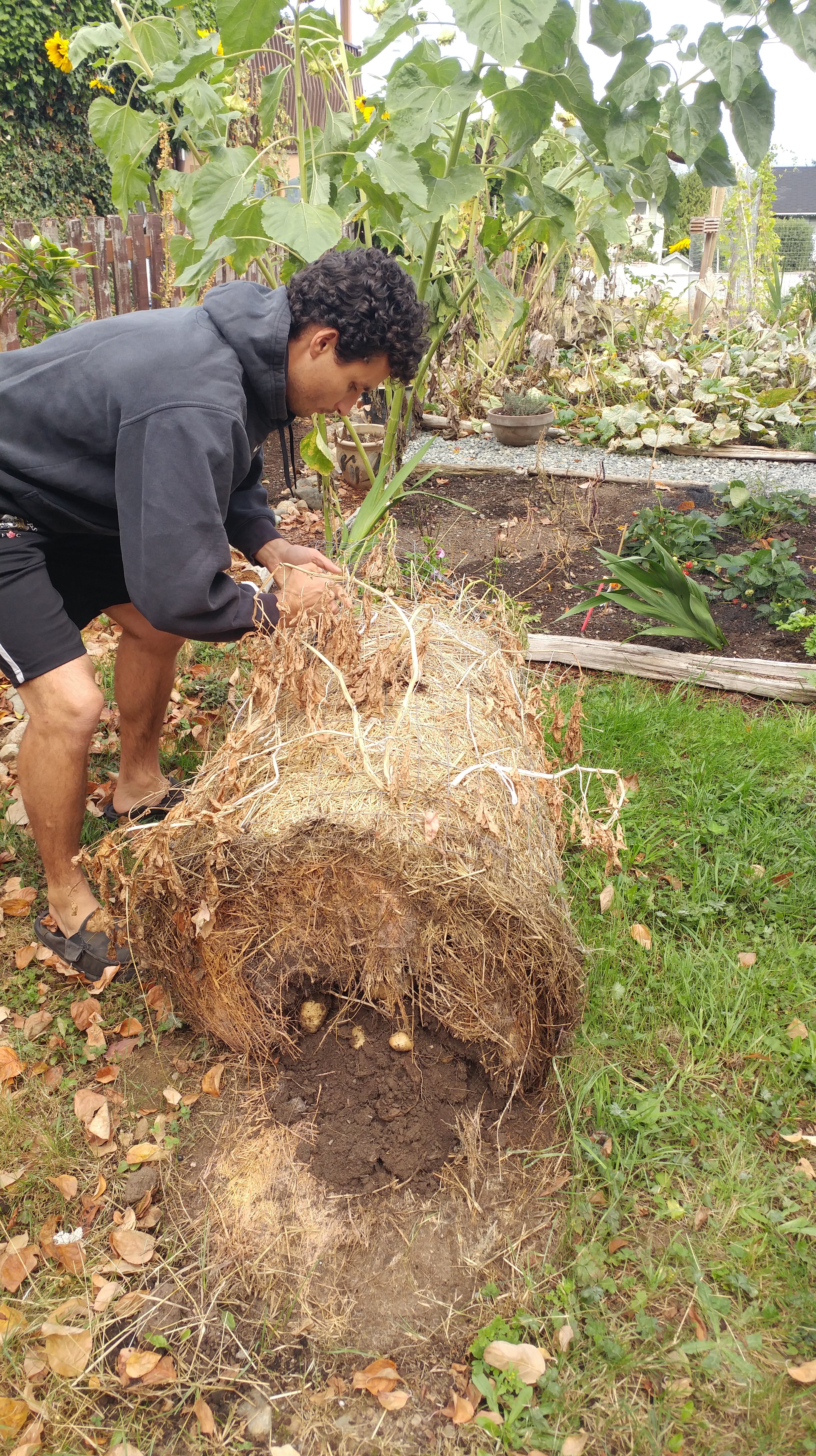 The tower was super easy to harvest after we removed the wire. The downside is this method made it much harder to grab a few fresh potatoes for a meal during the growing season.